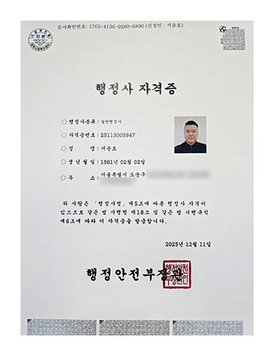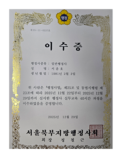 의뢰인 입장에서 쉽고 명확하게 해결해 드리는 행정 전문 사무소입니다.